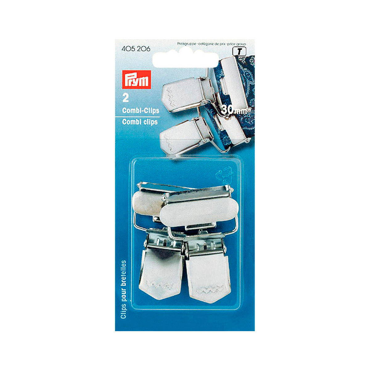 Зажимы д/подтяжек с пряжкой-клапаном, сталь, с защитой от коррозии, д/зажимания, 30мм, серебристый, 2шт в блистере, Прим