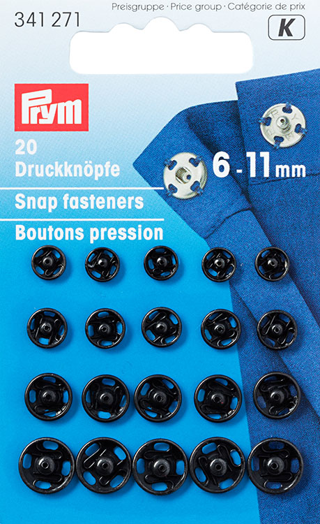 Кнопки пришивные латунь, нержавеющие, с отверстием д/фиксации, отбортованная нижняя часть, 6-11мм, черный, 20шт в блистере, Прим