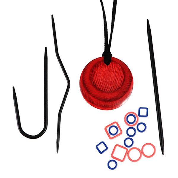 Набор для вязания "Cherry Berry" (в наборе: магнитное ожерелье - 1шт, спицы вспомогательные розной формы 2,5мм, 3мм, 3,5мм - 3шт, маркировщик для вязания - 20шт), металл