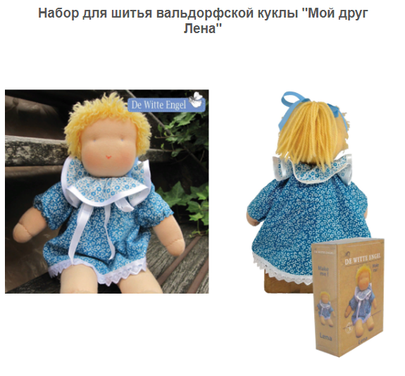 Голландская компания De Witte Engel широко известна наборами для создания вальдорфской куклы. При создании используются только натуральные и природные материалы (лён, хлопок и шерсть).
